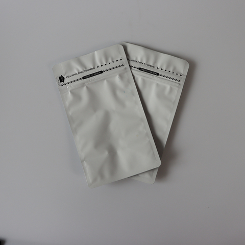Sachet debout écologique pour aliments, étanche à l'humidité, 3 joints latéraux, sachet de grains d'emballage de café blanc avec valve